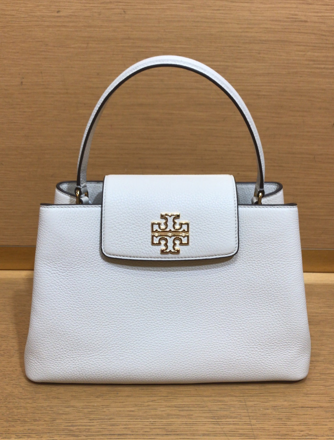 Logo: Gold or silver-tone Tory Burch double-T logo (hardware or embossed)