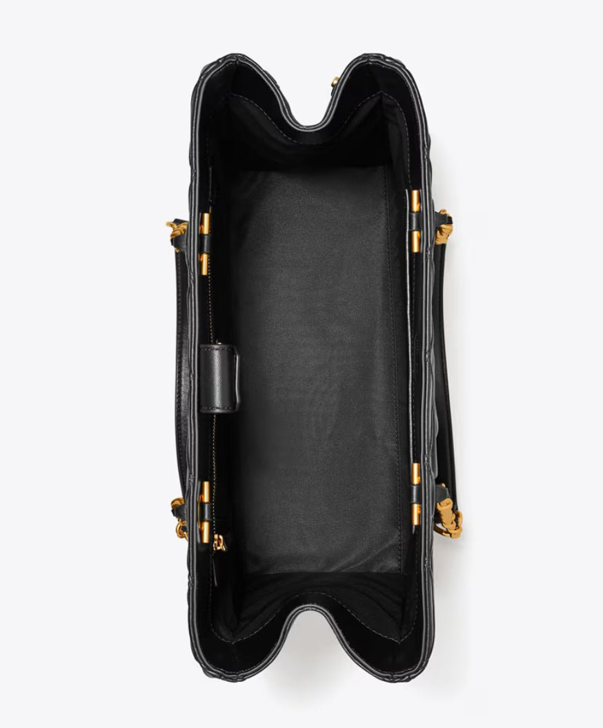 Enduring glamour. The Fleming tote is made of the softest leather with pintucks in a diamond pattern. The feminine silhouette has an oversized bombé Double T and brushed chain strap.